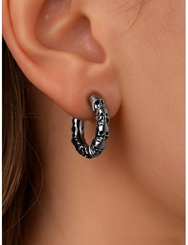 Damen-Halloween-Totenkopf-Creolen – Gothic-Punk-Kupfer-Huggie-Ohrringe für Kostümpartys, Cosplay und den Alltag