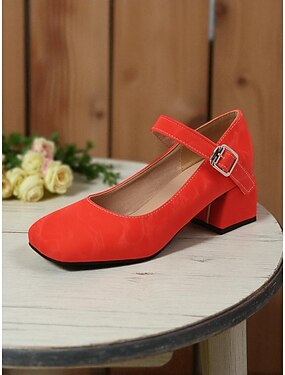 Rote Mary-Jane-Pumps aus Kunstleder im Vintage-Stil der 1950er-Jahre mit klobigem Blockabsatz, ideal für Alltag und Partys