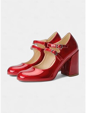 Rote Mary-Jane-Pumps aus Lackleder für Damen, Vintage-Pumps mit Doppelriemen und Blockabsatz für Weihnachtsfeiern und Feiertagsveranstaltungen &festliche Abendoutfits