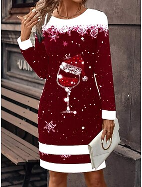 Damen Minikleid Shiftkleid T-Shirt-Kleid Lässig Täglich Normale Passform Grafik Geometrisch Langarm Rundhalsausschnitt Blau Schwarz Gelb Rote Frühling Herbst Winter