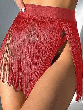 Damen Badeanzug Bikini-Unterteil Rock Bademode Fransensaum Urlaub Strandbekleidung Einfarbig Ärmellos Badeanzüge