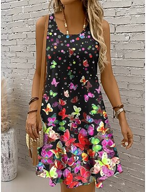 Damen Minikleid Freizeitkleid Sommerkleid A Linie Kleid Schulterfreies Kleid Urlaub Lässig Ferien Strand Normale Passform Ombre Grafik Schmetterling Ärmellos Rundhalsausschnitt Rundausschnitt