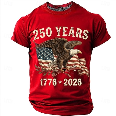 250. Jahrestag 1776–2026: Patriotisches Herren-T-Shirt mit Weißkopfseeadler und amerikanischer Flagge im Vintage-Stil – ein Symbol des USA-Stolzes. Grafik-Rundhalsausschnitt, Kurzarm. Perfekt als
