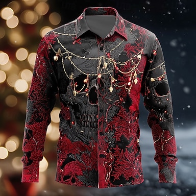 Herren Schädel Blumenmuster / Blume Tag der Toten Hemd Knopfhemd Langarm Dark Punk Gothic Outdoor Ferien Sommer Frühling Umlegekragen 3D-Druck Hemden mit Kragen Rote Purpur Orange Grün