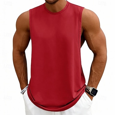 Herren Tank Top Weste Unterhemd Ärmelloses Shirt Ärmellos Rundhalsausschnitt Frühling & Sommer Einfach Mode Designer Basic Urlaub Straße Ausgehen Schwarz Weiß Rote Top T-Shirt für Herren