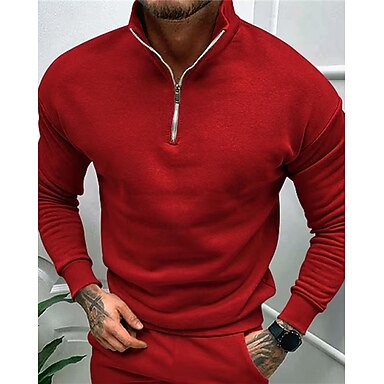 Herren Sweatshirt Viertelreißverschluss Sweatshirt Leichtes Khaki. Schwarz Weiß Wein Rote Halber Reißverschluss Einfach Sport & Outdoor Täglich Ferien Polyester Streetwear Basic Lässig Frühling