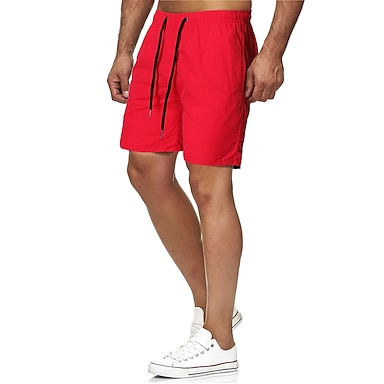 Herren Badehosen Badeshorts Boardshorts Kordelzug mit Mesh-Futter Netzfutter Einfarbig Schnelltrocknend Atmungsaktiv Kurz Strand Schwimmbad Baden Sport Mode Schwarz Rote Mikroelastisch