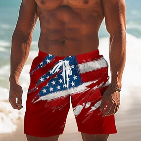 Herren Flagge 250. Jahrestag des Unabhängigkeitstages der USA am 4. Juli Amerikanische Flagge Boardshorts Badeshorts Shorts Mittlere Taille Mode Streetwear Hawaiianisch Lässig Täglich Streetwear