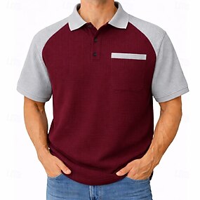 Herren Waffel-Poloshirts Textur Lässig Ferien Umlegekragen Kurzarm Basic Modern Farbblock Farbblock Knöpfe Sommer Frühling Blau Rote Grün Waffel-Poloshirts