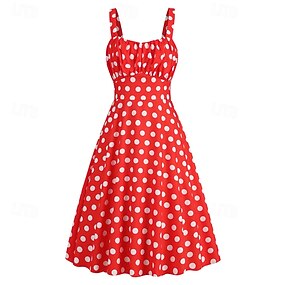 Retro Vintage 1950er Rockabilly Kleid Swing-Kleid Tupfen Kostüm Damen Karneval Maskerade Alltagskleidung Junggesellinnenabschiedsparty Erwachsene Kleid Abschlussballkleider