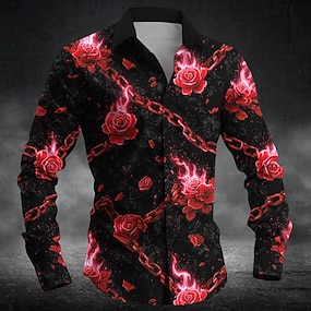 Herren Romantisch Flamme Rose Hemd Knopfhemd Langarm Dunkler Gothic-Stil Ferien Streetwear Sommer Frühling Umlegekragen 3D-Druck Hemden mit Kragen Rote Blau Grün