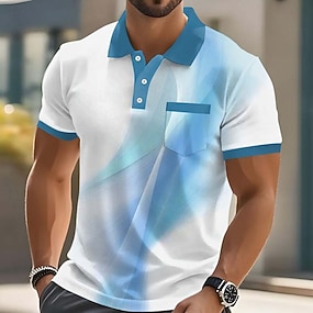 Herren Farbverlauf Geometrisch Poloshirts Kurzarm Polo-Shirts Revers Business-Casual Outdoor Ferien Alltagskleidung Tasche 3D-Druck Sommer Frühling Blau Rote Purpur