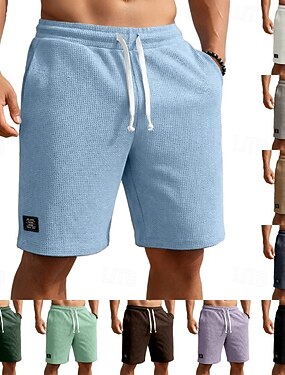 Herren Waffel-Shorts Shorts Freizeitshorts Tasche Elastischer Bund Strukturiert Einfach Komfort Atmungsaktiv Knielang Lässig Outdoor Strand Urlaub Mode Weiß Hellgrün Dehnbar