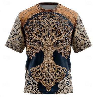Herren 3D Kelten Baum des Lebens T Shirt Kurzarm T-Shirt 3D-Druck Rundhalsausschnitt Hemd Vikinger Designer Lässig Party Straße Blau Purpur Braun Sommer Frühling Bekleidung S M L XL XXL XXXL