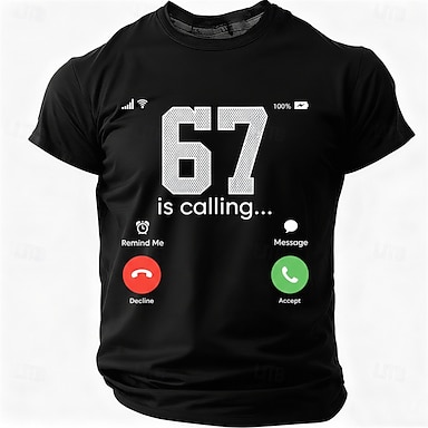 Herren Grafik 67 T Shirt Lustige T-Shirts Kurzarmshirt Kurzarm T-Shirt 3D-Druck Rundhalsausschnitt Hemd Mode Designer Basic Täglich Urlaub Straße Blau Schwarz Rote Sommer Frühling Bekleidung S M L XL