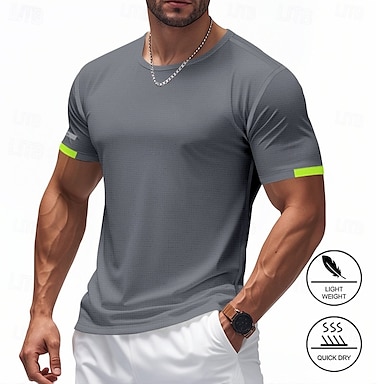 Herren T-Shirt Kurzarmshirt Kurzarm Rundhalsausschnitt Frühling & Herbst Einfarbig Mode Designer Schnelltrocknend reflektierende Streifen Urlaub Straße Ausgehen Blau Marineblau Schwarz Top T-Shirt