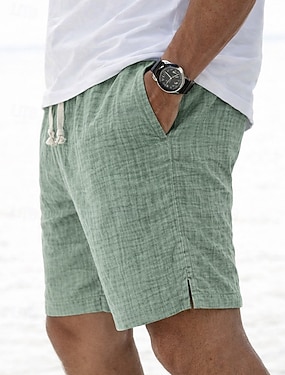Herren Shorts Leinenshorts Sommershorts Strandshorts Kordelzug Tasche Elastischer Bund Einfarbig Einfach Komfort Atmungsaktiv Knielang Lässig Täglich Ferien Urlaub Mode Grün + grau Schwarz+Grau