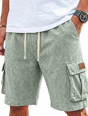 Herren Cargo Shorts Kurze Hosen Shorts Kurze Hosen Leinenshorts Kurze Hosen Sommer-Shorts Strandshorts Kurze Hosen Kordelzug Elastische Taille Multi Pocket Glatt Komfort Atmungsaktiv Knielänge