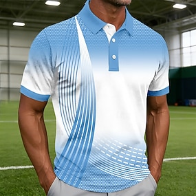 Herren Geometrisch Poloshirts Kurzarm Polo-Shirts Hemden mit Kragen Lässig Athleisure Alltagskleidung 3D-Druck Knöpfe Atmungsaktives Gewebe Frühling & Sommer Blau Meerblau Grün