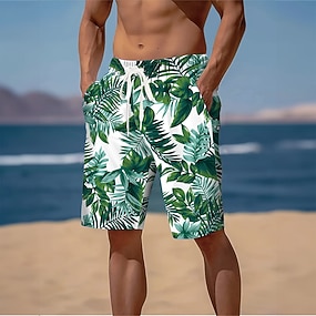 Herren Palmblatt Tropische Pflanzen Badehosen Badeshorts Boardshorts Mittlere Taille Streetwear Hawaiianisch Strandurlaub Seitentaschen Netzfutter Elastischer Kordelzug in der Taille Designer