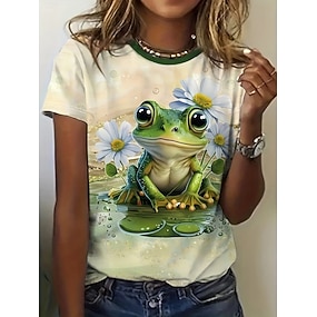 Damen T Shirt Druck Grafik Tiermotiv Vintage Stilvoll Klassisch Kurzarm Rundhalsausschnitt Rundhals Normale Oberteile Täglich Wochenende Schwarz Hellgrün Rosa Aprikose Sommer Frühling Herbst Winter