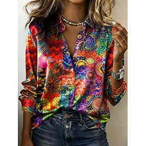 Damen Hemd Grafik Geometrisch Farbblock Vintage Stilvoll Modern Langarm Hemdkragen Normale Oberteile Täglich Ferien Violett Orange Grün Sommer Frühling