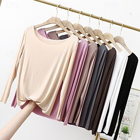 Damen T Shirt Einfach Mode Stilvoll Basic Langarm Rundhalsausschnitt Normale Oberteile Täglich Wochenende Schwarz Weiß Rosa Khaki Beige Sommer Frühling Herbst