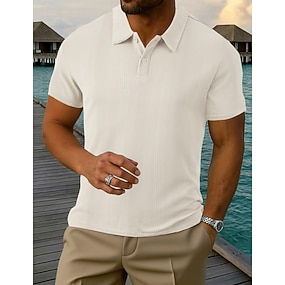 Herren Poloshirts Textur Lässig Straße Revers Kurzarm Basic Modern Einfach Streifen Knöpfe Strick Sommer Frühling Normale Passform Schwarz Weiß Burgunderrot Hell Gray Aprikose Leicht Blau Poloshirts