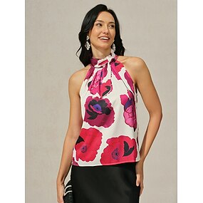Damen Designerhemd Blumen Damen Romantisch Modern Ärmellos Ärmellos Krawattenhals Neckholder Normale Oberteile Party Valentinstag Neujahr Fuchsie Sommer Frühling Herbst