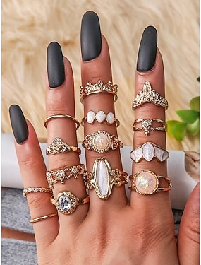 Damenring-Set im Bohème-Stil aus einer Legierung, verschiedene Designs, goldfarben, perfekt für Alltag, Urlaub und Reisen