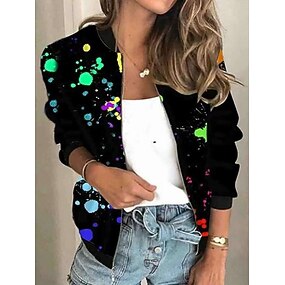 Damen Bomberjacke Bequem Atmungsaktiv Reißverschluss Druck Lässig Geometrisch Urlaub Straße Lässig Alltagskleidung Reisverschluss Kurz Stehkragen Normale Passform Langarm Oberbekleidung Schwarz