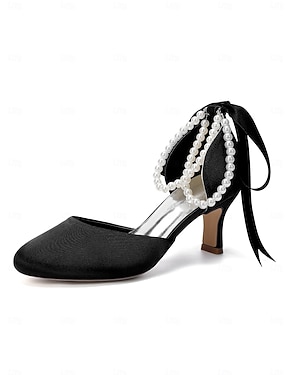 Satin-Hochzeitspumps für Damen mit Strass-Riemen – spitze Brautschuhe mit Blockabsatz in Weiß, Schwarz und Weinrot