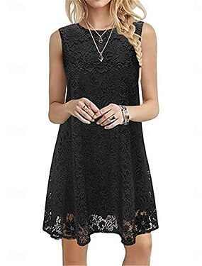 Damen Minikleid Spitzenkleid Weißes Kleid Weißes Spitzenhochzeitskleid Streetwear Straße Ferien Date Lässiger Schnitt Kurzarm Rundhalsausschnitt Schwarz Weiß Burgunderrot Sommer
