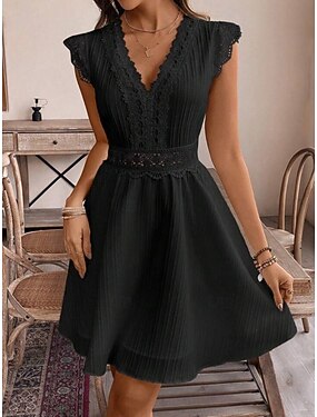 Damen Minikleid Spitzenkleid Weißes Kleid Elegant Mode Modern Outdoor Urlaub Ausgehen Normale Passform Einfach Kurzarm V Ausschnitt Schwarz Weiß Sommer Frühling