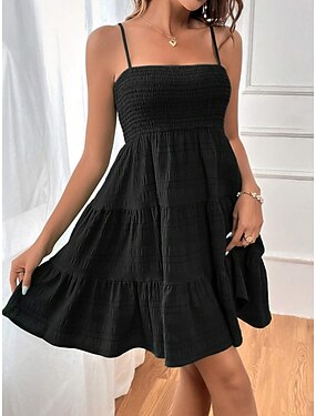 Damen Minikleid Sommerkleid Unterkleid Lässig Täglich Normale Passform Einfach Ärmellos Spaghettiträger Blau Schwarz Rote Fuchsie Sommer