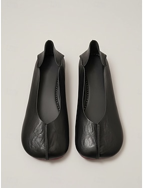 Minimalistische, braune Damen-Ballerinas mit weiter Passform – bequeme Vintage-Schuhe mit runder Zehenpartie, weiche Slipper mit geteilter Naht für den Alltag & reisen