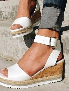 Weiße Damen Keilsandaletten aus Kork mit Fesselriemchen – lässige Sommer Plateauschuhe für den Alltag
