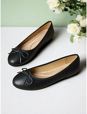 klassische Ballerinas mit Schleife für Damen – bequeme Schlupfschuhe mit runder Spitze für Büro & Alltag