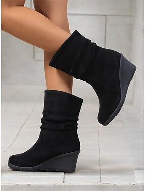 braune Wildlederstiefeletten für Damen – bequemer Keilabsatz mit lässigem Design, ideal für die Freizeit im Herbst und Winter