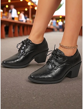 Schwarze Oxford-Schuhe aus Leder mit Blockabsatz für Damen – klassische Schuhe im Vintage-Stil für das Oktoberfest, Freizeitausflüge und den Alltag