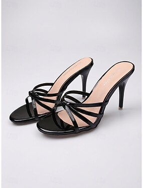 Schwarze Riemchensandalen mit Strasssteinen für Damen, offenes Stiletto-Design mit glamourösen Zickzack-Details, eleganter Party-Stil für das tägliche Date, Clubausflüge, Sommerabende oder