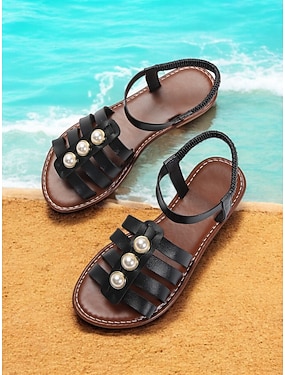 schwarze Gladiator-Sandalen mit Kunstperlenverzierung für Damen – elegantes Sommerschuhwerk