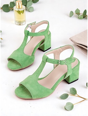 Grüne Sandalen mit klobigem Absatz für Damen – Retro-Schuhe aus Wildlederimitat mit T-Riemen und offener Spitze für die Arbeitskleidung im Sommer und den lässigen Streetstyle