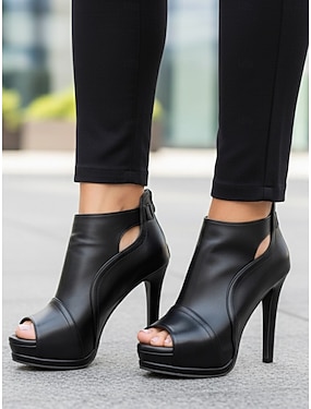 Sexy schwarze Peep-Toe-Stilettos für Damen mit Cut-Out-Design – Plateaustiefeletten aus Kunstleder für Party und Abendgarderobe