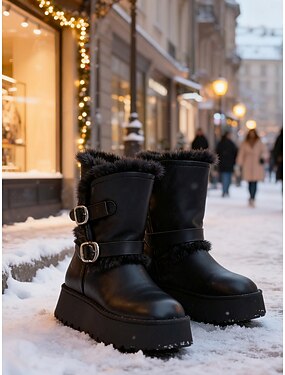 Braune Damen-Winterstiefel mit Kunstfellfutter – Schnallendetail, kuschelige Wärme und Plateausohle für lässige Outdoor-Aktivitäten, verschneite Tage und Wintermode