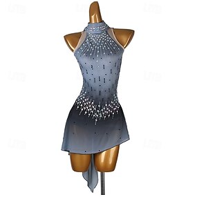 Eiskunstlaufkleid Damen Mädchen Eislaufen Kleid Grau Patchwork Offener Rücken Netzstoff Spandex Hohe Elastizität Training Übung Professionell Eiskunstlaufkleidung Klassisch Kristall / Strass Ärmellos