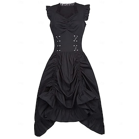 Punk & Gothic Renaissance Steampunk Kleid Gothic Mädchen Einfarbig Kostüm Damen Fantasie Steampunk Halloween Karneval Maskerade Alltagstauglich Erwachsene Kleid