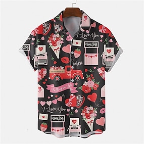 Herren Herz Hemd Knopfhemd Kurzarm Tropisch Modisch Hawaiianisch Casual Festtage Strand Sommer Frühling Umlegekragen Bedruckt Button-Down Schwarz Weiß Wein Rote Regenbogen