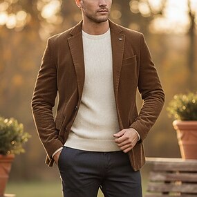 Herren Cordjacke Notch-Kragen Mode Klassisch Lässig Einfarbig Blazer Schwarz Burgunderrot Braun Figurbetonter Schnitt Einreihig Zwei-Knöpfe