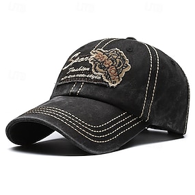 Herren Cap Basecap Sonnenhut Kappe Schwarz Kaki 100% Baumwolle Bestickt Modisch Brautkleider schlicht Strasse Täglich Patchwork Buchstabe Einstellbar Sonnenschutz Atmungsaktiv